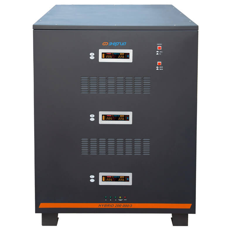 Энергия Hybrid 200000/3 относится к классу гибридных (комбинированных) стабилизаторов и сочетает в себе плавность регулировки