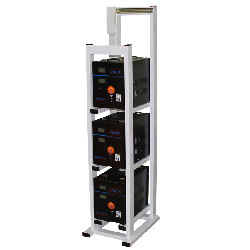 к трехфазной сети. Использование стойки упрощает электромонтаж комплекта стабилизаторов и позволяет минимизировать