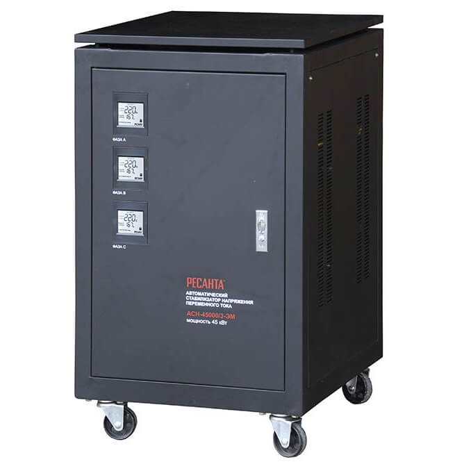В конструкции стабилизатора Ресанта АСН-45000/3-ЭМ применены современные инновационные подходы, позволившие