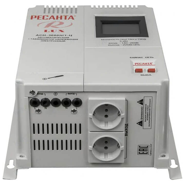 Настенный стабилизатор Ресанта LUX АСН-3000Н/1-Ц предназначен для выравнивания входного напряжения и