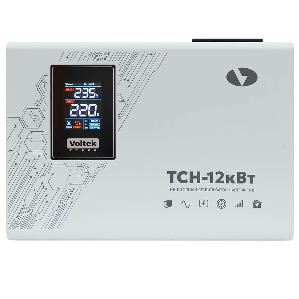 Стабилизатор Voltek ТСН-12кВт оснащен комплексом систем, обеспечивающим надежную защиту как